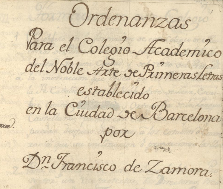 Ordenanzas para el Colegio Académico del noble arte de Primeras Letras establecido en la ciudad de Barcelona
