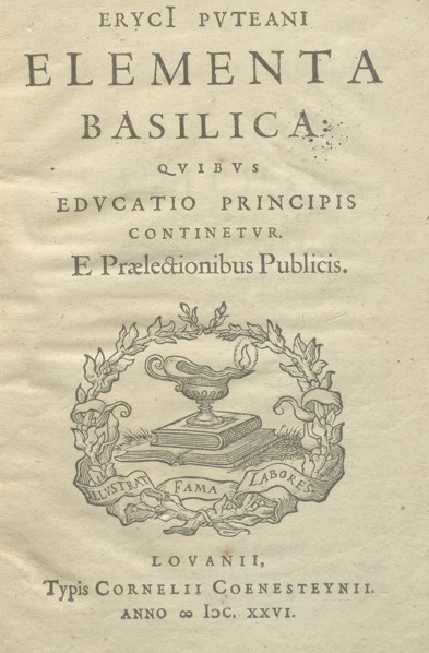 Eryci Puteani Elementa basilica : quibus educatio principis continentur e praelectionibus publicis