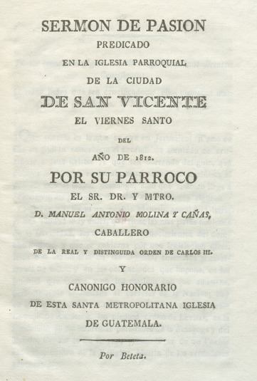 Sermón de Pasión predicado en la Iglesia Parroquial de la ciudad de San Vicente el Viernes Santo del año de 1812