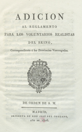 Adición al reglamento para los voluntarios realistas del reino correspondiente á las Provincias Vascongadas