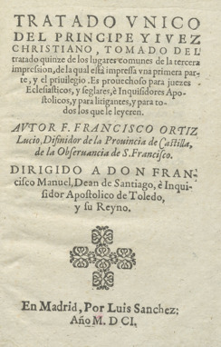 Tratado vnico del principe y iuez christiano : tomado del tratado quinze de los lugares comunes de la tercera impression, de la qual está impressa vna primera parte y el priuilegio. Es prouechoso para juezes ecclesiasticos y seglares e inquisidores apostolicos, y para litigantes y para todos los que le leyeren.